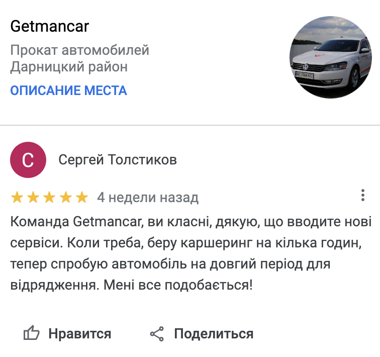 Команда Getmancar, ви класні, дякую, що вводите нові сервіси.